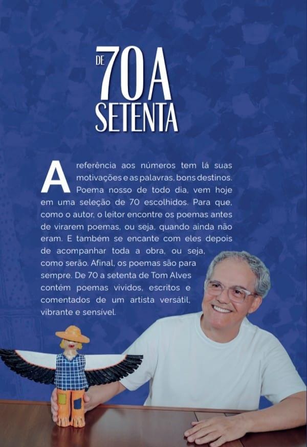 De 70 a Setenta – é um livro que celebra a memória, a poesia e a narrativa pessoal. Ao longo das páginas, o autor compartilha experiências, reflexões e momentos que marcam a trajetória de vida, trazendo ao leitor uma viagem íntima e emocionante entre lembranças, sentimentos e ensinamentos.